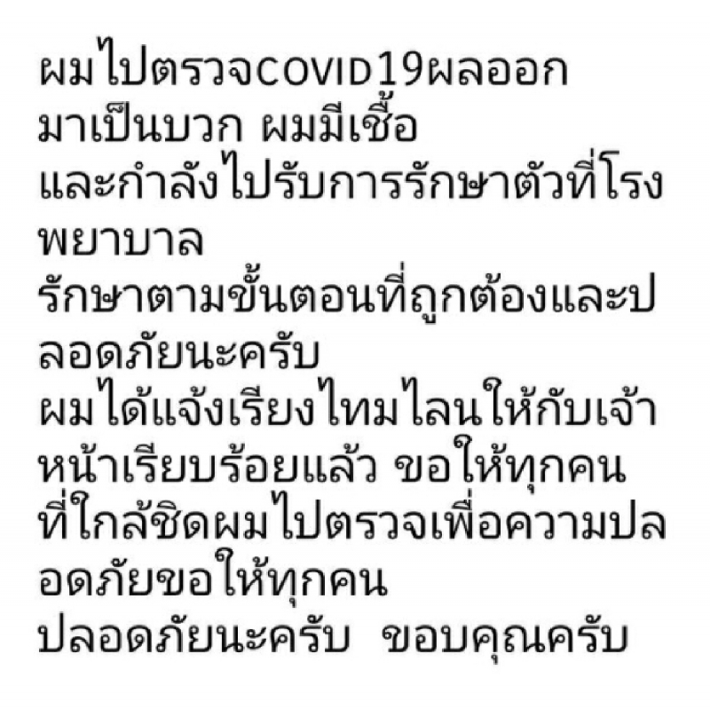 ดีเจเพชรจ้า วิเชียร กุศลมโนมัย ได้ออกมาประกาศว่าตัวเองติดcv ผ่านทางอินสตาแกรมพร้อมระบุข้อความว่า ผมไปตรวจcv ผลออกมาเป็นบวก ผมมีcvและกำลังไปรับการรักษาตัวที่โรงพยาบาล รักษาตามขั้นตอนที่ถูกต้องและปลอดภัยนะครับ ผมได้แจ้งเรียงไทมไลน์ให้กับเจ้าหน้าที่เรียบร้อยแล้ว ขอให้ทุกคนที่ใกล้ชิดผมไปตรวจเพื่อความปลอดภัยขอให้ทุกคยปลอดภัยนะครับ ขอบคุณครับ