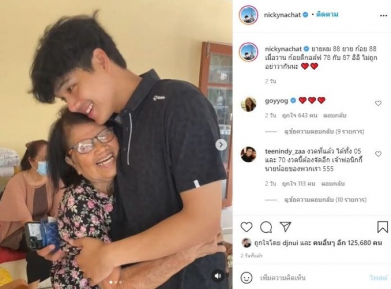 นิกกี้ ณฉัตร โพสต์คลิปสวมกอดยาย พร้อมบอก ใ บ้ เ ล ข ให้แฟนๆ ก่อน ห ว ย ออกว่า ย า ย ผม 88 ย า ย ก้อย 88 เมื่อวาน ก้อยตีกอล์ฟ 78 กับ 87 อิอิ ไม่ถูก อย่าว่ากันนะ