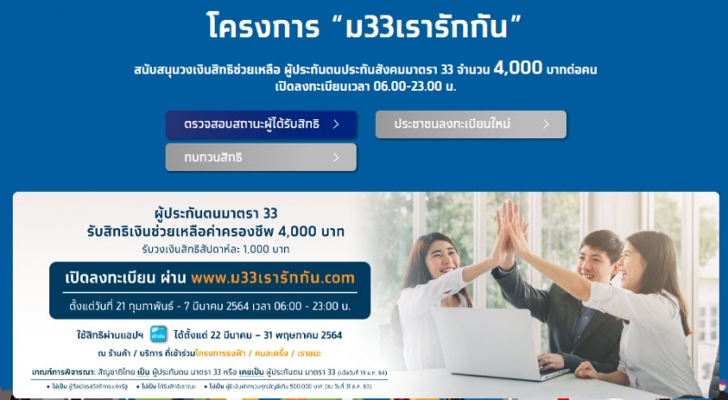 โครงการ ม33เรารักกัน สนับสนุนวงเงินสิทธิช่วยเหลือ ผู้ประกันตนประกันสังคมมาตรา 33 จำนวน 4,000 บาทต่อคนได้โอนเงิน ง ว ด ละ 1,000 บาทและ ง ว ด นี้ ก็เป็นงวด สุดท้าย อย่าลิมเช็ค และใช้สิทธิ์กันก่อนวันที่ 31 พฤษภาคมนี้นะคะ