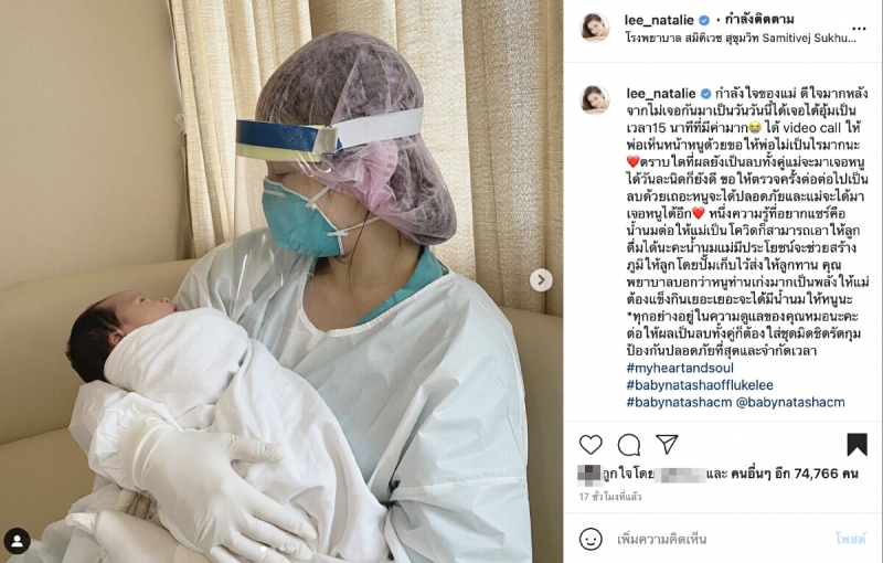 ในขณะที่ภรรยา สาวนาตาลี เจียรวนนท์ เเละลูกสาว น้องนาตาชา ที่เพิ่งคลอดได้ 10 วัน ตรวจรอบแรกเเล้วไม่พบ เ ชื้ อ เเละต่อมา สาวนาตาลี หัวอกแทบ ส ล า ย ก่อนถูกจับแยกลูกสาว น้องนาตาชา ได้อุ้มแค่ 15 นาที โดย สาวนาตาลี ก็ได้โพสต์อินสตราเเกรมขณะอุ้มลูกสาว เเละได้ระบุข้อความว่า