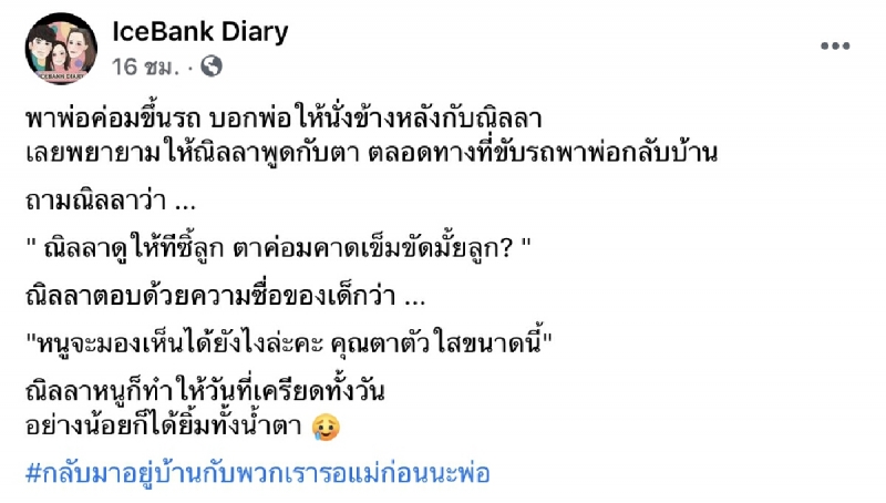 เลยพยายามให้ณิลลาพูดกับตา ตลอดทางที่ขับรถพาพ่อกลับบ้าน