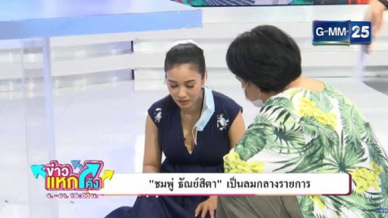 เกือบไปแล้วเนื่องจากลืมว่าตัวเองใส่แมสก์ไว้ 2 ชั้น ก่อนเข้ารายการปกติต้องถอดออก เลยทำให้หายใจไม่ทัน บวกกับไม่ได้ทานข้าวเช้า..ดีนะพยายามเกาะโต๊ะไว้ไม่ให้หงายท้องลงไป.. ในจังหวะที่มองอะไรไม่เห็นแล้วยังมีสติหูยังฟังว่าแขกพูดจบแล้ว.. เลยรีบพูดปิดรายการจนจบเฮ้อขออภัยทีมงานและแขกรับเชิญรวมถึงคุณผู้ชมไว้ ณ ที่นี้ด้วยนะคะ จะไม่ให้มีเหตุการณ์แบบนี้อีกค่ะ