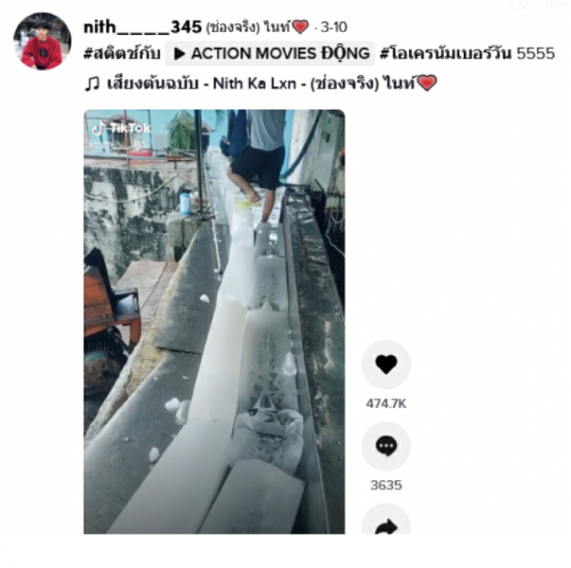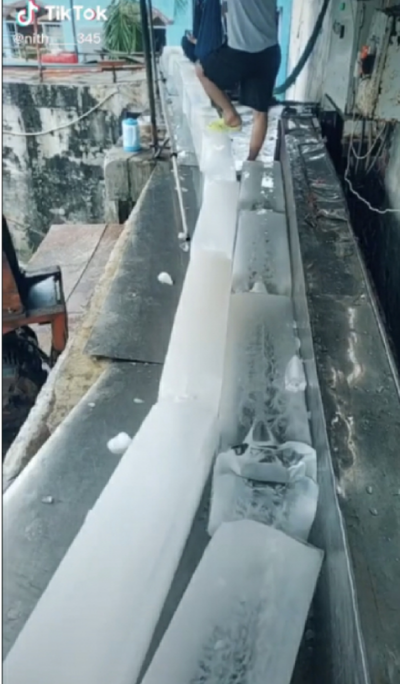 ล่าสุด ผู้ใช้ tiktok รายหนึ่งได้ออกมาโพสต์คลิป เบื้องหลังโรงงานน้ำแข็งแห่งหนึ่ง ซึ่งคาดว่าเป็นโรงงานในต่างประเทศ ที่ในคลิปเผยให้เห็นนาทีพนักงาน ใช้เท้าเหยียบก้อนน้ำแข็ง ก่อนส่งให้ลูกค้าบริโภค