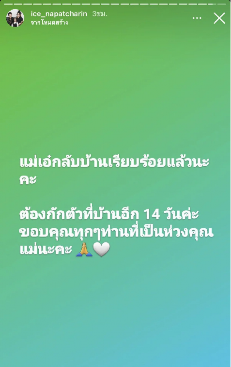 ไอซ์ ณพัชรินทร์ ลูกสาวน้าค่อม แจ้งข่าวดี แม่เอ๋ ได้กลับบ้านแล้ว
