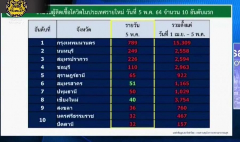 ทั้งนี้ กทม.อันดับ 1 ย อ ด พุ่งขึ้น จับตา สมุทรปราการ นนทบุรี สมุทรปราการ ชลบุรี สุราษฎร์ธานี ปทุมธานี สงขลา นครศรีธรรมราช และปัตตานี ยอดเพิ่มมากกว่าวานนี้