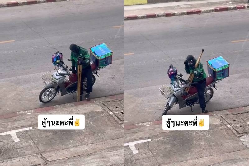 หนุ่มส่งอาหาร สู้สุดใจ แม้ชีวิตต้องใช้ไม้ค้ำ