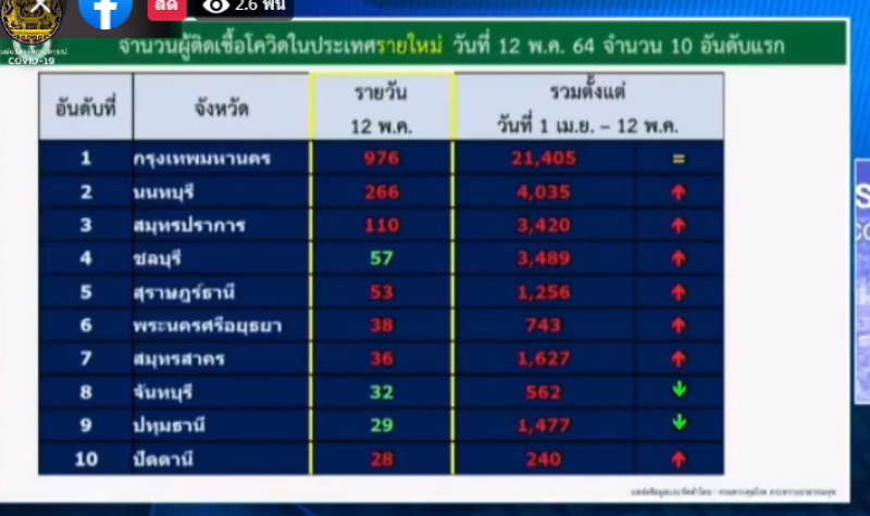 รายงานเกาะติดความคืบหน้า สถานการณ์ โ ค วิ ด วันนี้ การแถลงศูนย์บริหารสถานการณ์ โ ค วิ ด -19 (ศบค.) ตรวจสอบอัพเดท 10 จังหวัดอันดับพบผู้ติด เ ชื้ อ โ ค วิ ด 19 สูงสุด