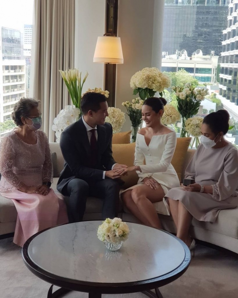 จากกรณีในอินสตาแกรมสตอรี่ของ หญิง ได้เผยภาพโมเมนต์พิเศษ ขณะเข้าพิธีหมั้นแบบนิวนอร์มอล์กับว่าที่เจ้าบ่าว ตุลย์ โดยมีคุณแม่ของทั้งสองคนนั่งประกบข้าง ๆ ในช่วงพิธีแลกแหวน เรียกว่าเป็นการจัดงานแบบนิวนอร์มอล มีเพียงญาติสนิทไม่กี่คนร่วมยินดี