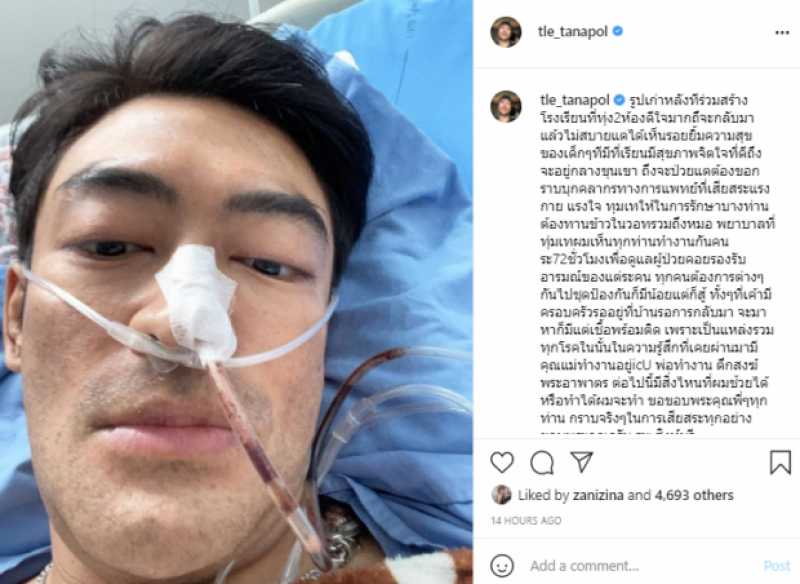 เรียกได้ว่าทำเอาแฟนๆอดเป็นห่วงไม่ได้ หลัง ในอินสตราเเกรมของอดีตพระเอกคนดัง เติ้ล ธนพล ได้โพสต์ภาพของตัวเอง ขณะที่ใส่สายยางโยงจมูก พร้อมเเคปชั่นว่า