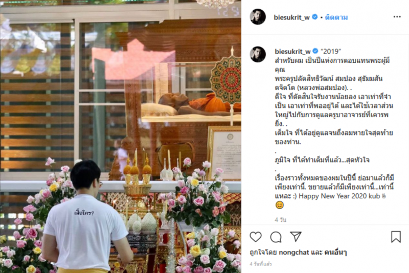 ล่าสุด บี้ สุกฤษฎิ์ ได้เขียนเล่าเรื่องราวถึงชีวิตของตัวเองในปีที่ผ่านมา บี้เผยว่า ดีใจที่ตัดสินใจรับงานน้อยลง เอาเท่าที่จำเป็น เอาเท่าที่พออยู่ได้ และได้ใช้เวลาส่วนใหญ่ไปกับการดูแลครูบาอาจารย์ที่เคารพอย่างเต็มที่ จนถึงวันสุดท้ายของท่าน