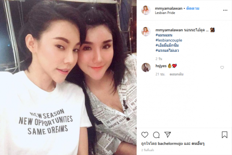 และนอกจากนี้เจ้าตัวยังได้โพสต์ภาพคู่กับสาวปริศนา พร้อมแคปชั่นว่า แมนแมน lesbiancouple เอ็มมี่แม็กซิม ซึ่งก็ไม่รู้ว่าสาวปริศนาคนนี้จะเป็นหวานใจของ เอ็มมี่ อมลวรรณ จริงหรือไม่ ยังไงแฟนๆ ก็ต้องรอฟังจากปากสาวเอ็มมี่อีกทีจ้า