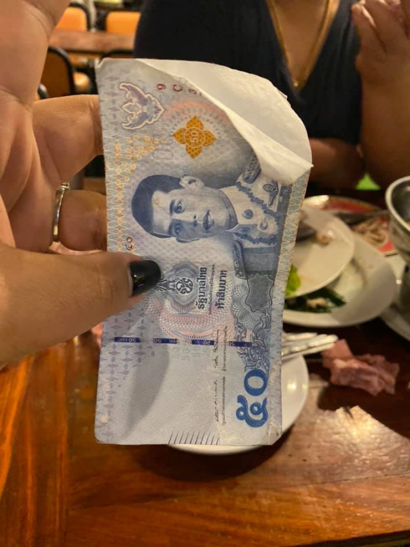 สาวโพสต์แบงค์ 50 ปลอม