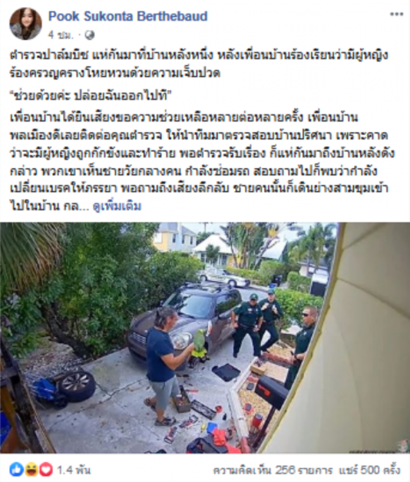 ตำรวจปาล์มบีช แห่กันมาที่บ้านหลังหนึ่ง หลังเพื่อนบ้านร้องเรียนว่ามีผู้หญิงร้อง