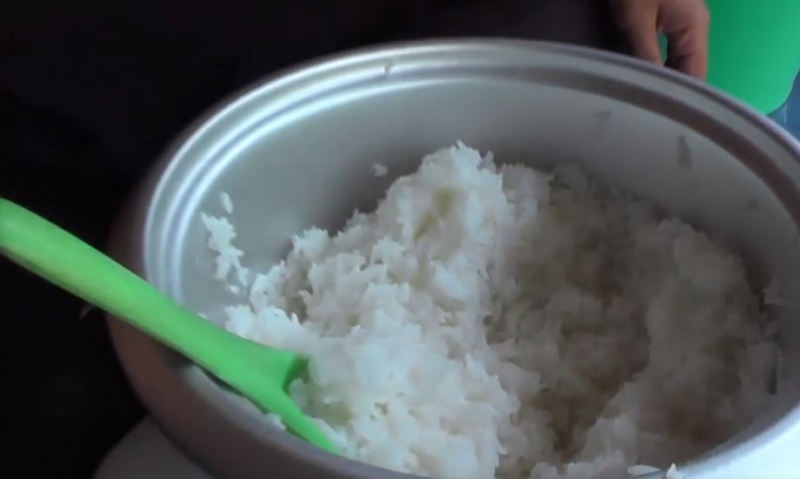 เเม่บ้านหุงข้าวสารถุงใหม่ที่เพิ่งซื้อ