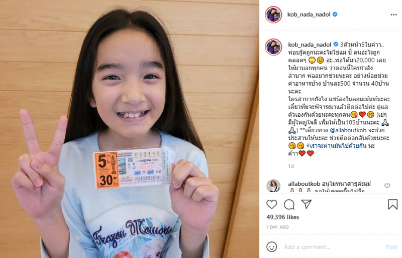 จากกรณี กบ สุวนันท์ ได้ออกมาโพสต์ภาพผ่านอินสตาแกรม @kob_nada_nadol โดยได้ระบุข้อความว่า 3 ตัวหน้า 5 ใบค่าา พ่อบรู๊คถูกนะคะไม่ใช่แม่ ชิ คนอะไรถูกตลอดๆ อ่ะ พ่อได้มา 20,000