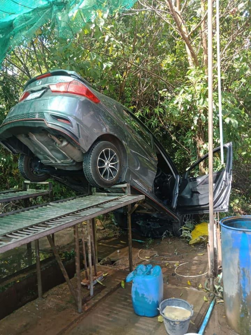 สาวเอารถไปล้าง พอไปเอารถถึงกับงง รถกำลังชี้ฟ้า แถมยังปิดร้านหนี