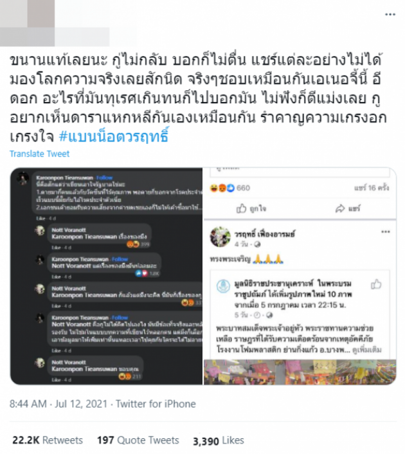 งานนี้โลกโซเชียลร้อนฉ่า แห่แคปข้อความดังกล่าวแชร์สนั่น ล่าสุดติดแฮชแท็ก #แบนน็อตวรฤทธิ์ พุ่งขึ้นเทรนด์ทวิตเตอร์ ขณะที่ชาวเน็ตคนหนึ่งเข้าไปคอมเมนต์ในทวิตเตอร์ของ เพชร ให้เลิกคบ น็อต