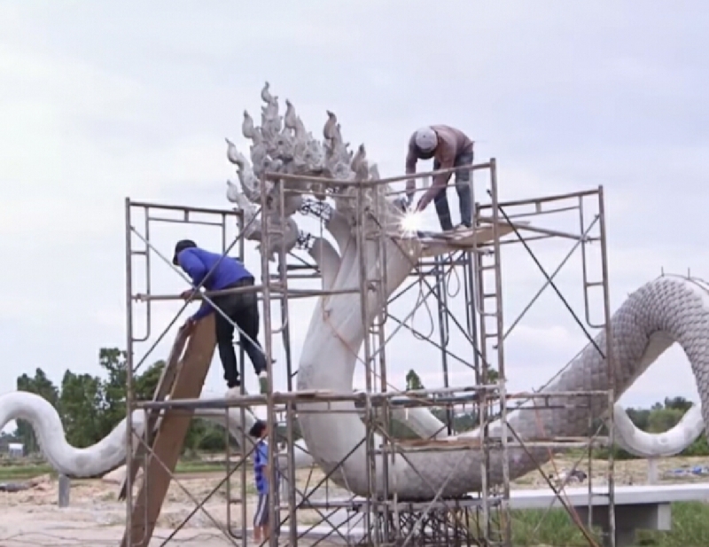 โดยการก่อสร้างพญานาคจำนวนสองตัว ที่ทำการก่อสร้างโดยไม่ได้ขออนุญาต บริเวณพื้นที่ หมู่ที่ 14 ต.กุดพิมาน ซึ่งเป็นพื้นที่ ติดต่อกับหมู่ที่ 10 ต.หนองบัวตะเกียด ก่อสร้างโดย