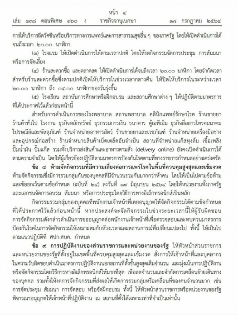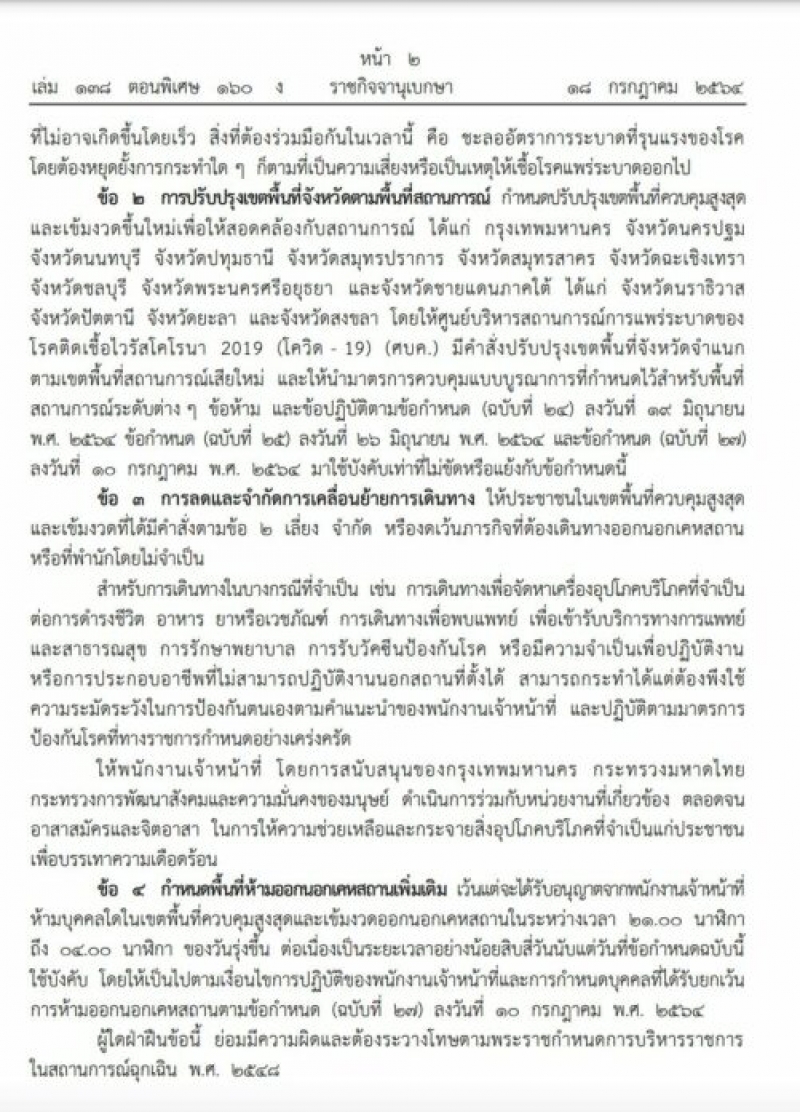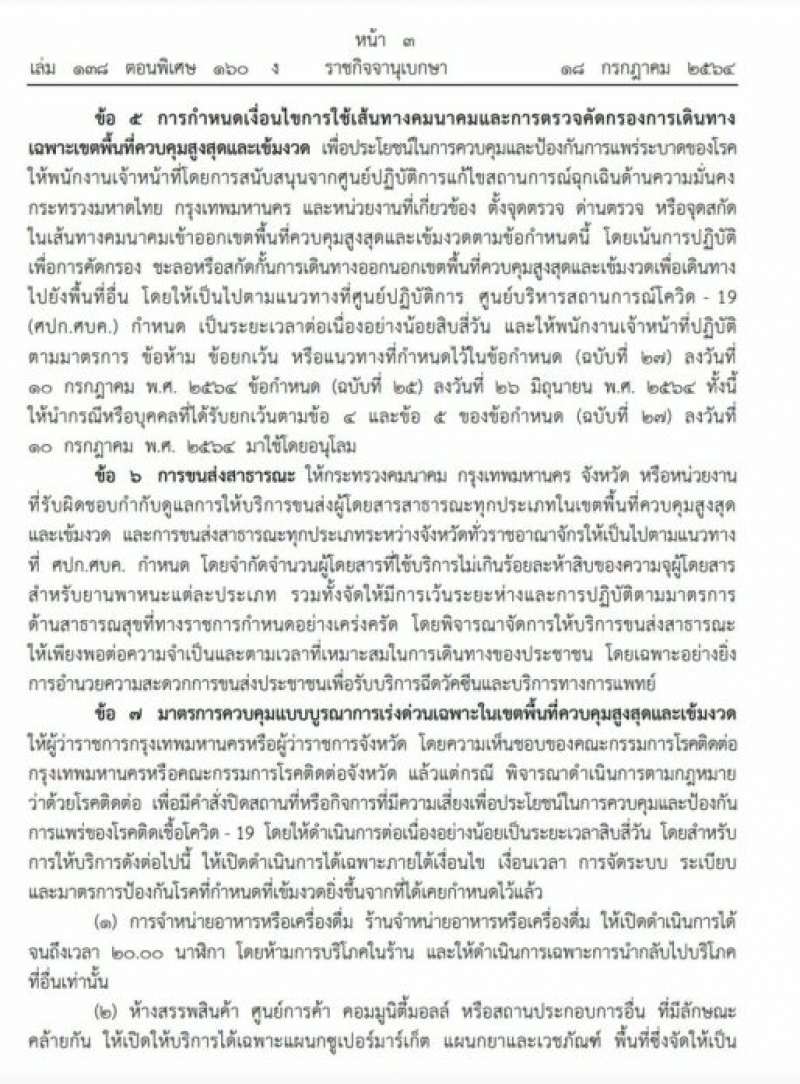 เมื่อเวลา 07.00 น. วันที่ 18 ก.ค. ราชกิจจาฯ เผยแพร่ประกาศมาตรการฉบับใหม่ มีผลบังคับใช้ 20 ก.ค.นี้