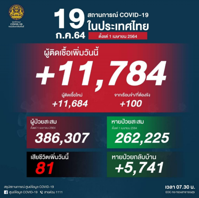 ต้องบอกว่าทำเอาประชาชนในประเทศไทยต้องผวาอย่างหนัก เมื่อเข้าขั้น วิ ก ฤ ต หนัก ยอด โ ค วิ ด -1 9 ยังคงทำลายสถิติต่อเนื่อง เพราะผู้ ติ ด เ ชื้ อ เพิ่มในวันนี้ 11,784 เ สี ย 81 คน