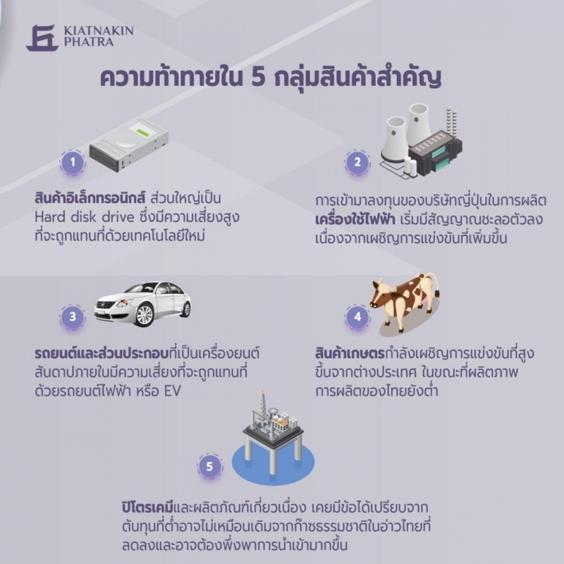 ยิ่งไปกว่านั้น สินค้าส่งออกของไทยหลายอย่างกำลังเผชิญความท้าทายจากเทคโนโลยีใหม่ๆ และปัจจัยสนับสนุนทั้งจากในประเทศและต่างประเทศที่เริ่มแย่ลงเรื่อยๆ