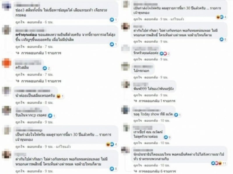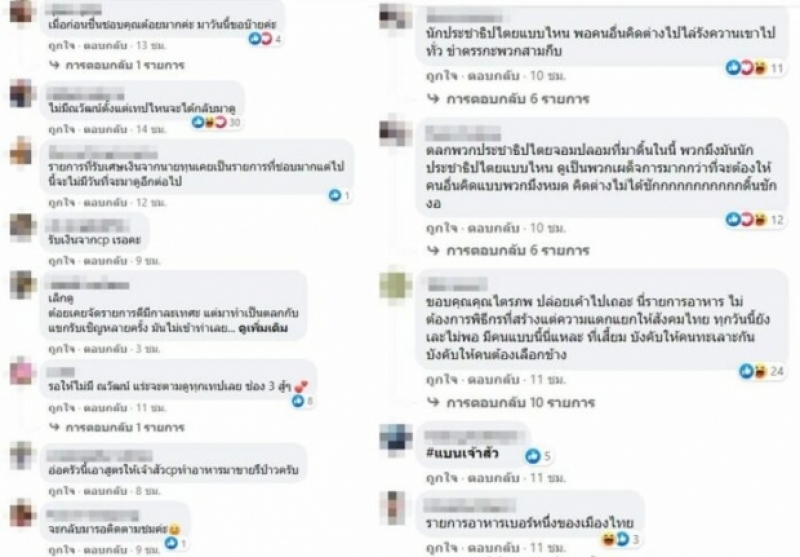 ขณะเดียวกันเพจเฟซบุ๊ก ครัวคุณต๋อย ต่างมีชาวเน็ตเข้าไปคอมเมนต์เป็นจำนวนมาก เเสดงความคิดเห็นเกี่ยวกับเรื่องราวที่เกิดขึ้น ทั้งดราม่าเกี่ยวกับรายการเเละดราม่าของช่อง 3 เเต่ก็ยังมีชาวเน็ตบางส่วนได้เข้ามาคอมเมนต์ให้กำลังใจ