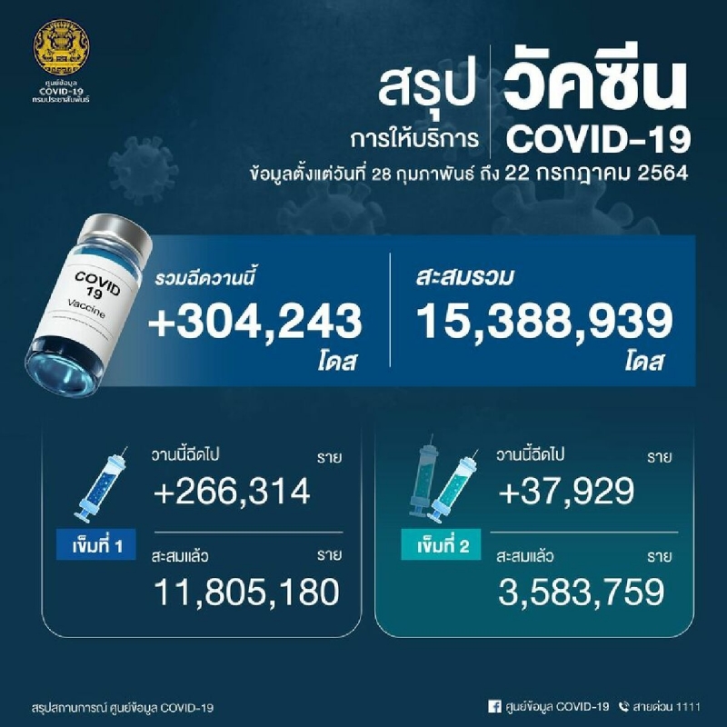 ภาพรวมยอด ฉี ด วั ค ซี น วันที่ 22 กรกฎาคม 2564
