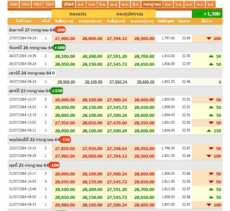 ราคาทองย้อนหลังแสดงการปรับเปลี่ยนราคาทองประจำวันเรียลไทม์ตามประกาศของสมาคมค้าทองคำ ทั้งทองคำแท่ง ทองคำรูปพรรณ