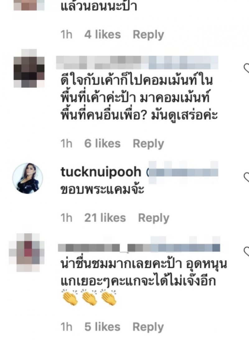 หนุนล้อได้ดีเหรอคะ งั้นต้องช่วยซื้อหลายกล่องเลยค่ะ คุณตั๊ก คุณนุ้ย น่ารักดีนะคะ เป็นคู่ที่เหมาะสมกันมากค่ะ ศีลเสมอกัน เชียร์ค่ะ กตัญญูรู้คุณคน ไม่ปีนเกลียว เป็นตัวอย่างที่ดีเเก่นักแสดงรุ่นหลังค่ะ ด้าน ตั๊ก ศิริพร ตอบกลับเพียงสั้นๆว่า @sinehnud ขอบพระแคมจ้ะ งานนี้ต้องบอกเลยว่าเล่นกับใครไม่เล่น