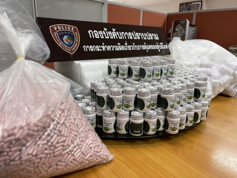 โดยจับกุมนายธนโชติ (สงวนนามสกุล) พร้อมของกลางผลิตภัณฑ์แคปซูลฟ้าทะลายโจร จำนวน 450 ขวด , ผลิตภัณฑ์แคปซูลกระชายขาว จำนวน 50 ขวด, ผลิตภัณฑ์แคปซูลบรรจุผง จำนวน 29 กก., แคปซูลบรรจุผง จำนวน 60,000 แคปซูล, แคปซูลบรรจุในซอง ยังไม่ติดฉลาก จำนวน 300 ซอง, แคปซูลบรรจุในขวด ยังไม่ติดฉลาก จำนวน 460 ขวด, ขวดเปล่าพร้อมฝา จำนวน 6,000 ขวด และ สติกเกอร์ฉลากผลิตภัณฑ์ มูลค่าของกลางกว่า 400,000 บาท
