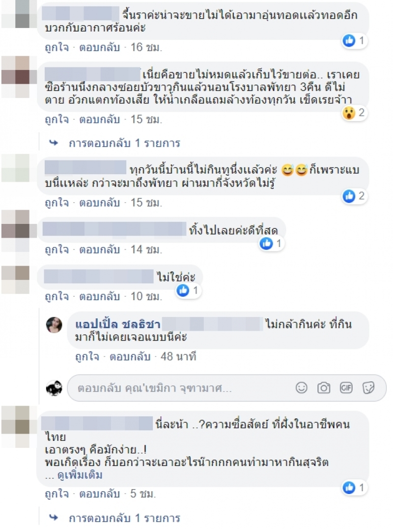 ผู้ใช้เฟซบุ๊กโพสต์ข้อความระบุว่า คือมันขึ้นราใช่มั้ย ไม่กล้ากินเลย ซื้อมาปากซอยบัวขาว 15