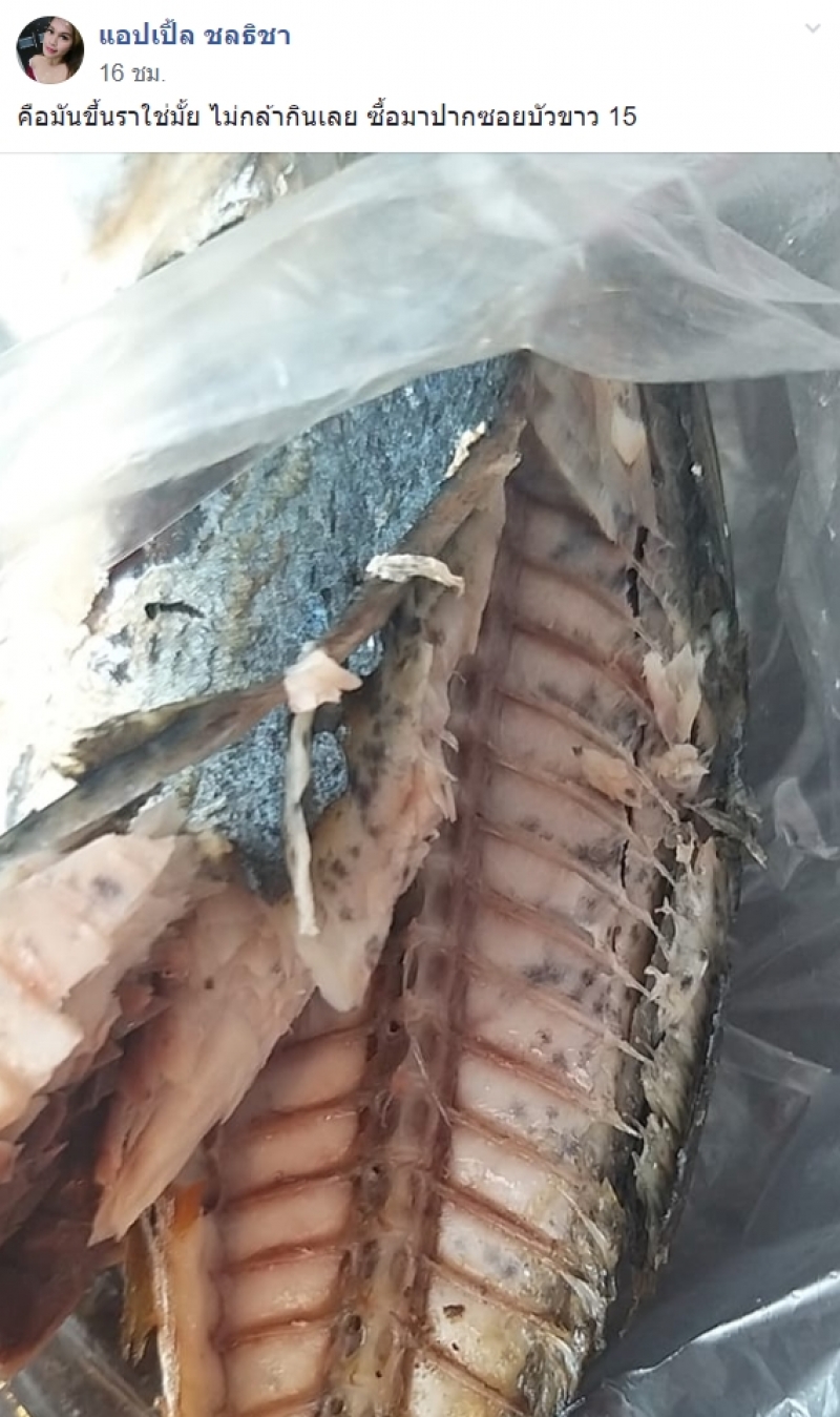 เรียกได้ว่าเป็นเรื่องราวที่มีคนแห่เข้ามาแสดงความคิดเห็นกันเป็นจำนวนมาก จากกรณีสาวผู้ใช้เฟซบุ๊ก แอปเปิ้ล ชลธิชา โพสต์ภาพปลาทูตัวหนึ่ง ที่เธอไปซื้อมาจากหน้าปากซอย โดยด้านในมีจุดสีดำอยู่ภายในปลา ก่อนที่เธอจะถ่ายภาพพร้อมนำเรื่องราวมาโพสต์ถามชาวโซเชียลว่าสิ่งที่้เห็นมันคืออะไรกันแน่ ซึ่งเธอยอมรับว่าหลังจากได้เห็นจุดสีดำอยู่ในปลาส่ง ทำเอาเธอถึงกลับไม่กล้ารับประทาน และได้นำปลาทูตัวดังกล่าวไปทิ้งในที่สุด