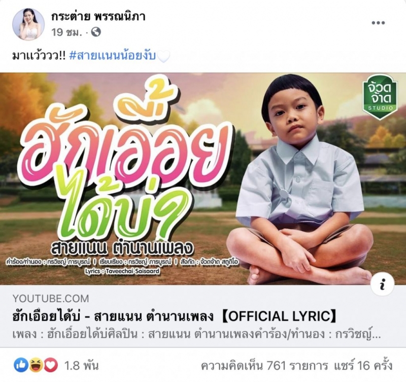 ล่าสุด กระต่าย พรรณนิภา นั้นก็ได้ลอยตัวเหนือดราม่า โปรโมทเพลงใหม่ของ ลูกชายอดีตเมีย หลัง เอ๋ มิรา ขึ้นแท่นนางเอก Mv โดยงานนี้ สาวกระต่าย ได้โพสต์เฟซบุ๊กส่วนตัวเเละระบุข้อความว่า มาเเว้ววว!! #สายเเนนน้อยงับ ท่ามกลางชาวเน็ตที่เข้ามาเเสดงความคิดเห็นอย่างมากมาย