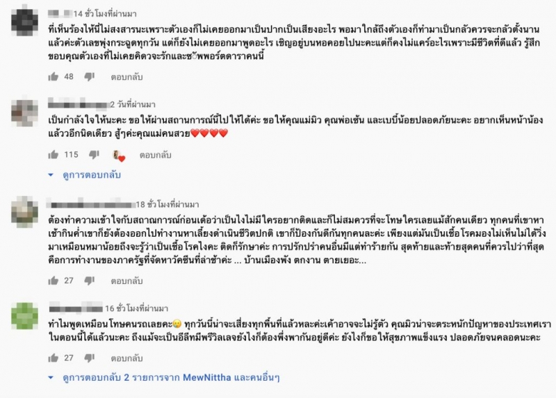 ก็คือถ้าตัวเองรู้สึกว่ามีอาการก็ต้องรีบบอกคนอื่นถ้ามีความเสี่ยงก็ควรที่จะบอกกัน คนอื่นที่จะได้ระมัดระวัง เพราะเรามีความเสี่ยงเราไม่สบายใจมาก ซึ่งในขนาดนั้น สาวมมิว นิษฐา ก็ร้องไห้ออกมาอย่างหนัก โดยสามีก็รีบเข้ามาปลอบว่าไม่เป็นไรก่อน ที่จะลุ้นผลตรวจ โ ค วิ ด โดยสลับกันตรวจซึ่งผลปรากฏว่า ร อ ด โ ค วิ ด ทั้งคู่