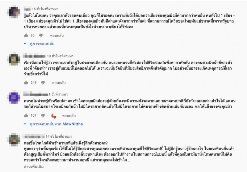 จากกรณี สาวมิว นิษฐา ก็ได้ออกมาโพสต์คลิปวิดีโอผ่านช่อง YouTube ของตัวเธอเอง และได้กล่าวว่าขณะนี้ ท้ อ ง ได้ 7 เดือน ตนเองยังไม่ได้ฉีด วั ค ซี น สักเข็มเดียว เนื่องจากท้องอยู่คาดว่าหลัง ค ล อ ด ค่อย ฉี ด เพื่อความปลอดภัย