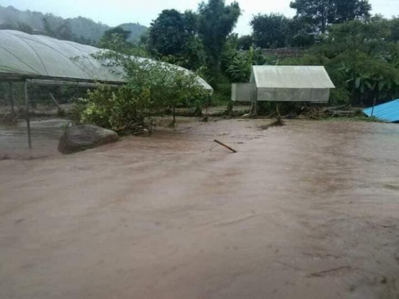 ผู้สื่อข่าวรายงานว่า ทั่วพื้นที่ของจ.เชียงราย เกิดฝนตกหนักโดยเวลาประมาณ 04.00 น.ที่ผ่านมา น้ำป่าจากลำห้วยแล้งพื้นที่ดอยตุง เทือกเขาดอยนางนอน ทะลักเข้าท่วมหมู่บ้านสันเกล็ดทอง หมู่ 7 ต.โป่งงาม อ.แม่สาย