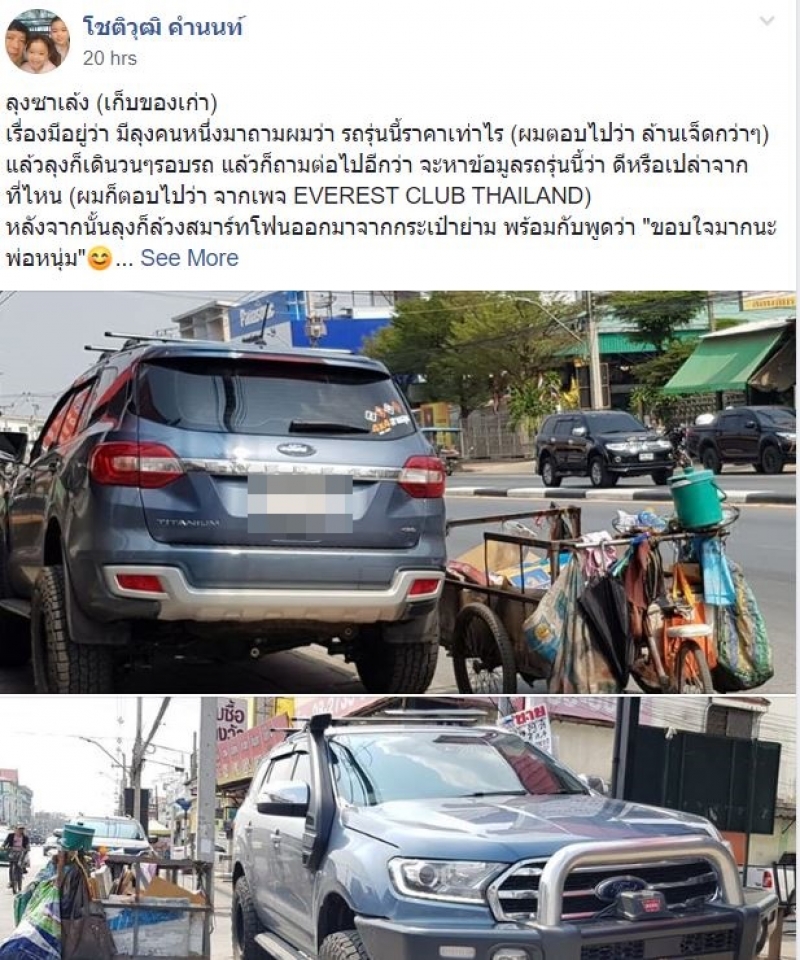 โดยทางผู้ใช้เฟซบุ๊ค โชติวุฒิ คำนนท์ ได้เผยผ่านทางกลุ่ม ลุงซาเล้ง เก็บของเก่า เรื่องมีอยู่ว่า มีลุงคนหนึ่งมาถามผมว่า รถรุ่นนี้ราคาเท่าไร ผมตอบไปว่า ล้านเจ็ดกว่าๆ แล้วลุงก็เดินวนๆรอบรถ แล้วก็ถามต่อไปอีกว่า จะหาข้อมูลรถรุ่นนี้ว่า ดีหรือเปล่าจากที่ไหน