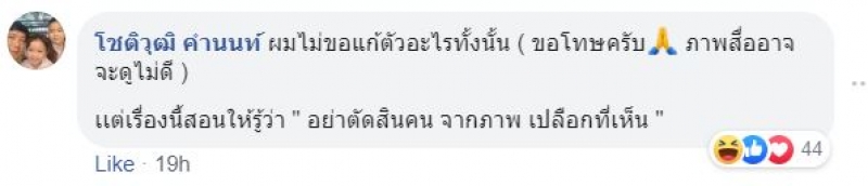 เเละก็มีคำชี้เเจงล่าสุดจากเจ้าของโพสต์ ผมไม่ขอแก้ตัวอะไรทั้งนั้น ขอโทษครับ ภาพสื่ออาจจะดูไม่ดี เเต่เรื่องนี้สอนให้รู้ว่า อย่าตัดสินคน จากภาพ เปลือกที่เห็น