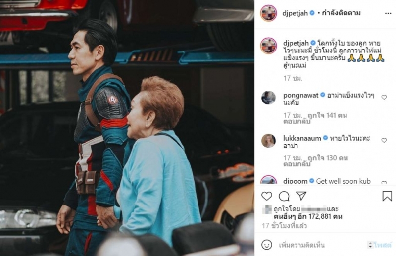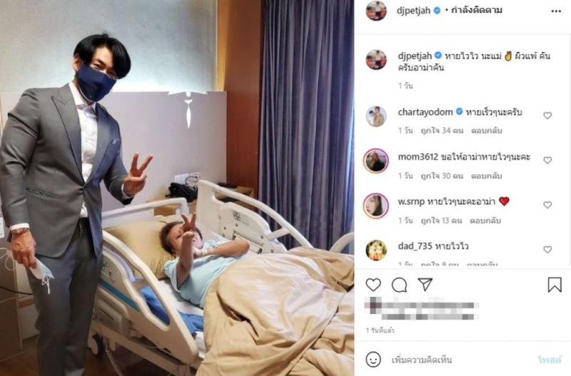 เเละในเวลาต่อมา ดีเจเพชรจ้า ก็ได้โพสต์ถึงอาม่าอีกครั้งว่า โลกทั้งใบ ของลูก หายไวๆนะมะมี้ ชั่วโมงนี้ ลูกภาวนาให้แม่แข็งแรงๆ ขึ้นมานะครับ สู้ๆนะแม่