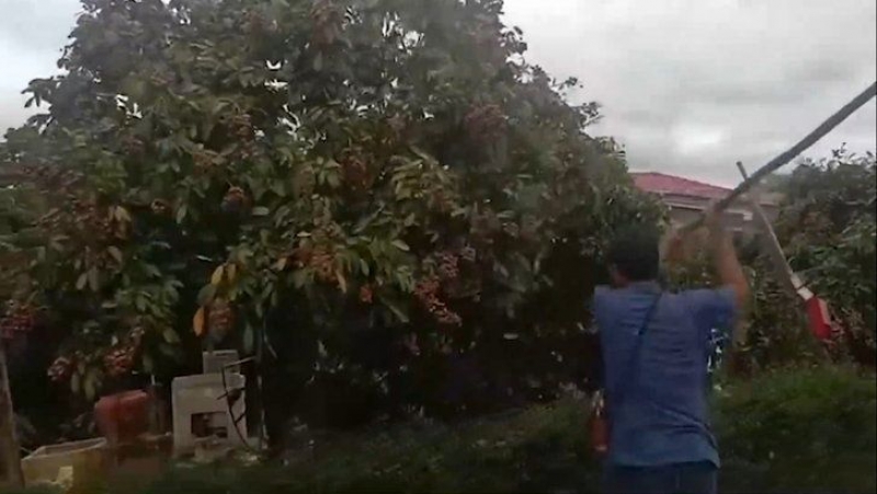 โดยเจ้าของสวนลำไล อายุ 43 ปี ยอมรับว่าเครียดที่ราคาลำไยต่ำมาก เก็บแล้วไม่คุ้มต้นทุน ทั้งที่ผลผลิตลำไยฤดูกาลนี้ได้ผลผลิตดี ลู ก โ ต ผิ ว สวย (สีเหลืองทอง) ไม่มีแมลงรบกวน แต่ราคากลับต่ำลงทุกวัน หลังจากที่ล้งและโรงงานลำไยอบแห้งปิดรับชื้อ ทำให้ลำไยทั้งแก่จัดและเริ่มเน่าเสีย จึงเกิดความเครียดใช้ ไม้ ฟ า ด ลำไยดังกล่าว
