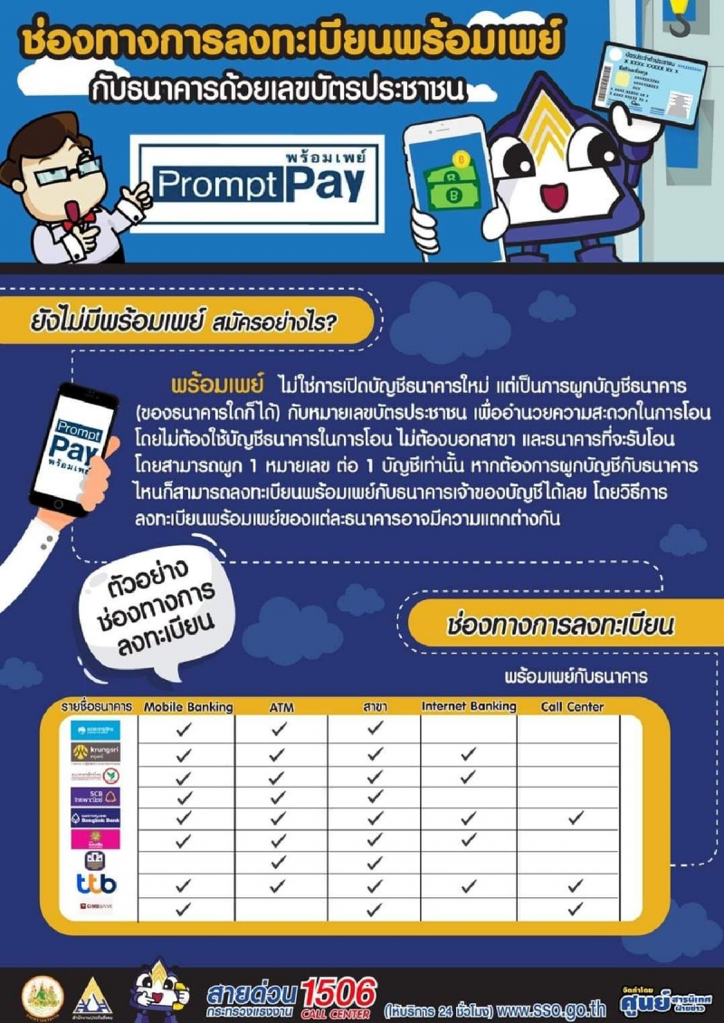 ผู้ประกันตนที่ได้รับสิทธิ ประกันสังคมจะโอนเงินเยียวยาผ่านทางพร้อมเพย์ที่ผูกกับเลขบัตรประชาชน