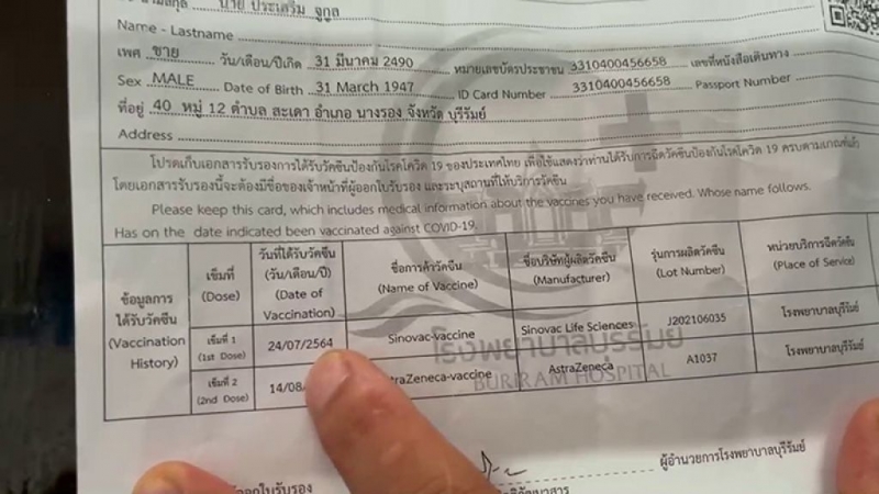 จากกรณีที่คุณ ย า ย สมหวัง จูกูล วัย 70 ปี หลังพลัดหลงกับลูกในสนาม ฉี ด วั ค ซี น ที่สนามฟุตบอลช้าง อารีน่า จ.บุรีรัมย์ สรุปได้ ฉี ด วั ค ซี น แ อ ส ต ร้ า เ ซ น เ น ก้า ทีเดียว 2 เ ข็ ม รวด ทั้งแ ข น ซ้ายและ แ ข น ขวา โดยพบว่าก่อนหน้านี้คุณ ย า ย ได้มีการ ฉี ด วั ค ซี น เ ข็ ม ที่ 1 คือ วั ค ซี น ซิ โ น แ ว ค มาแล้วด้วย
