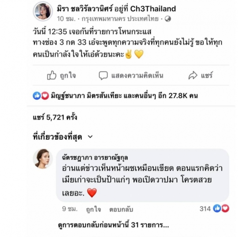 จากกรณีเจ้าของคลินิกดัง โผล่เลือกข้าง คอมเมนต์อดีตเมีย เอ๋ มิรา เหน็บแรงไม่ไว้หน้า ไพบูลย์ กลางเฟซบุ๊ก โดยทางด้าน เจ้าของคลินิก ได้เข้ามาเเสดงความคิดเห็นในโพสต์ของ เอ่ มิรา ว่า อ่านเเต่ข่าวนึกว่าผู้ชายหน้าเหมือนเขียด ตอนแรกคิดว่าเมียเก่าจะเป็นป้าแก่ๆ พอเปิดวาปมาโครตสวยเลยอะ