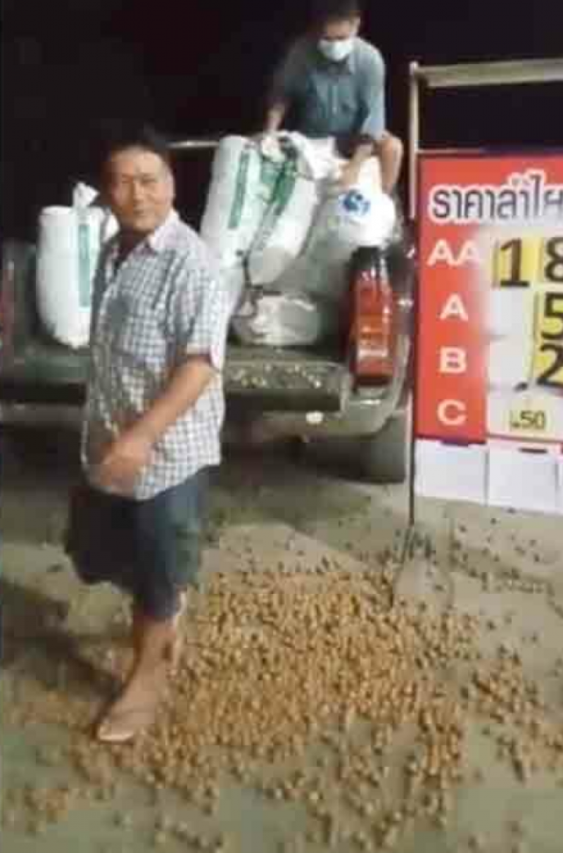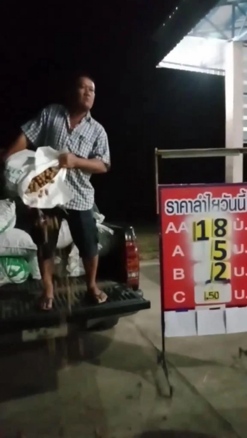 หลังจากที่บรรทุกลำไยที่เก็บจากสวนเต็มท้ายรถยนต์กระบะนำไปส่งขายที่จุดรับซื้อเอกชน แต่ต้องพบความผิดหวังอย่างมากที่ราคารับซื้อลำไยเกรด A อยู่ที่เพียงกิโลกรัมละ 5 บาทเท่านั้น