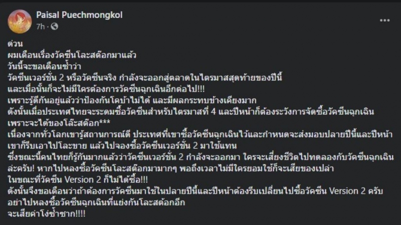 ในขณะที่ วั ค ซี น Version 2 ก็ไม่ได้ซื้อ