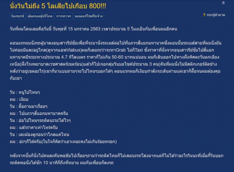 เรียกได้ว่าเป็นเรื่องราวที่มีคนต่างเข้ามาแสดงความคดเห็นกันเป็นจำนวนมาก โดยสมาชิกพันทิปหมายเลข 1110421 ที่โพสต์กระทู้หัวข้อเรื่อง นั่งวินไม่ถึง 5 โลเสียไปเกือบ 800 เล่าประสบการณ์ที่พบเจอมากับตนเอง สดๆร้อนๆ บอกให้เจ้าของกระทู้ไปแจ้งความเเล้วพาเจ้าหน้าตำรวจไปชี้ตัวที่วินต้นทาง โดนโกงชัดๆแบบนี้ อย่ายอม