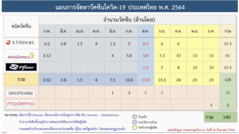 ซึ่งใน 3 เดือนหลัง (ต.ค.-ธ.ค.) จะมีไฟเซอร์เข้าไทยเดือนละ 10 ล้านโดส