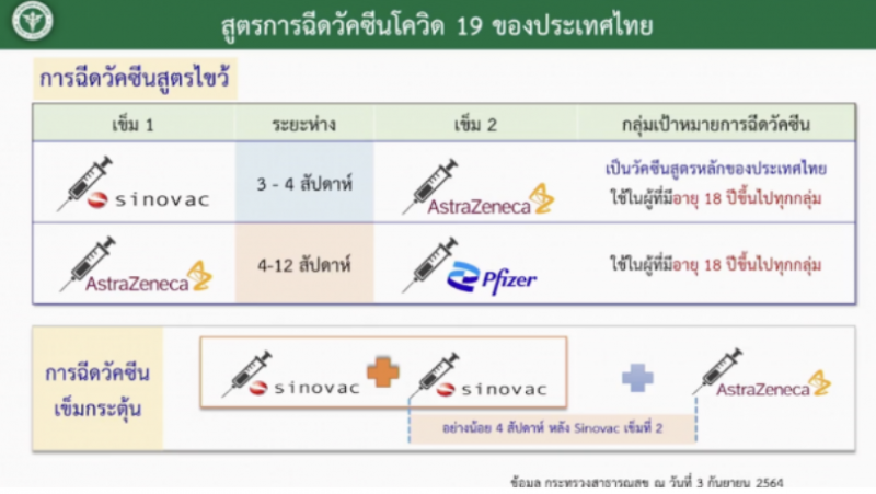 โดยอาศัยข้อมูลทางวิชาการใหม่ ๆ ทั้งผลการศึกษาวิจัยในต่างประเทศ และการศึกษาในประเทศไทย ซึ่งขณะนี้แนะนำสูตรวัคซีนไขว้ 2 สูตร ได้แก่