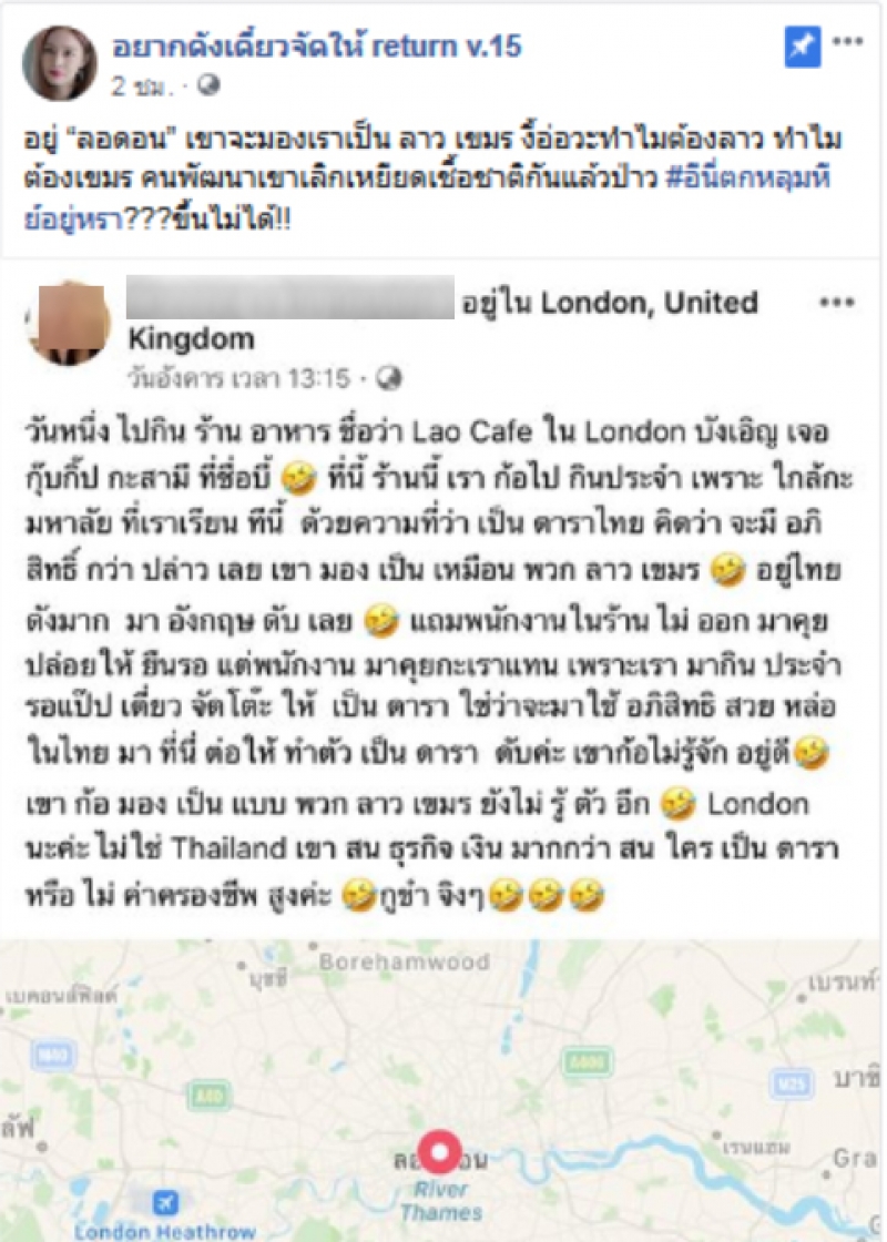 สาวไทย โพสต์แรง ดาราคู่รัก มาเที่ยวอังกฤษไม่ต่างจากคนลาว เขมร หลังไปร้านอาหารไม่มีคนต้อนรับ