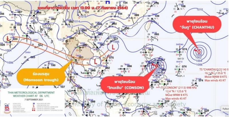 วันที่ 7 ก.ย.64 กรมอุตุนิยมวิทยา รายงานอัพเดตพายุสถานการณ์พายุค่ำวันนี้ 7/9/64 พายุโซนร้อน โกนเซินCONSON ที่ปกคลุมตอนกลางของประเทศฟิลิปปินส์ กำลังเคลื่อนตัวไปทางทิศตะวันตกค่อนทางเหนือเล็กน้อย คาดว่าจะเคลื่อนตัวลงสู่ทะเลจีนใต้ในวันที่ 9 กันยายน 2564